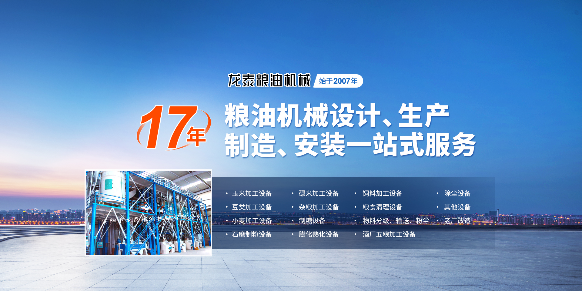 安陽市龍泰糧油機械有限公司是一個集糧油機械設計、生產制作、安裝于一體的設備制造商。公司坐落于農業生產基地河南省安陽市。多年來,公司與科研機構建立了廣泛的技術協作關系,精心致力于糧食加工設備的技術創新與應用,產品涵蓋整套碾米機械、小麥加工設備、玉米加工設備、雜糧加工設備,飼料加工及油脂設備等多個領域??沙薪尤椎慕昏€匙工程,提供從資金預算,整體規劃,土建設計,設備制造、安裝、培訓,售后保障等一站式服務?! ∥夜緭碛歇毩⒆灾鬟M出口權及產品原產地注冊證書。產品除國內市場外,多次出口到,亞洲,非洲,南美洲、東歐等多個國家及地區。為國內外多家企業提供了工藝先進,技術過硬,節能的糧油設備,深得國內外客戶的一致好評。 公司以“質量就是生命”為宗旨,根據客戶不同需求,采用合理的技術方案,為客戶量身打造投資建廠方略,爭取實現高收益。公司生產過程嚴格按照合同和圖紙設計要求,生產符合設計標準、檢測標準、質量優良的產品供給客戶,并提供安裝、調試、培訓,保修期免費維修,終身免費咨詢等服務,確保設備在長期使用中穩定運行?! ↓執?愿與您一起攜手共創輝煌!